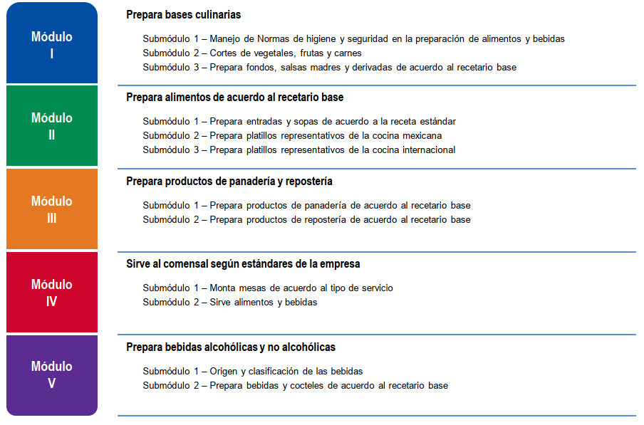 Durante el proceso de formación de los cinco módulos, el estudiante desarrollará o reforzará las siguientes competencias profesionales, correspondientes al Técnico en Preparación de Alimentos y Bebidas: